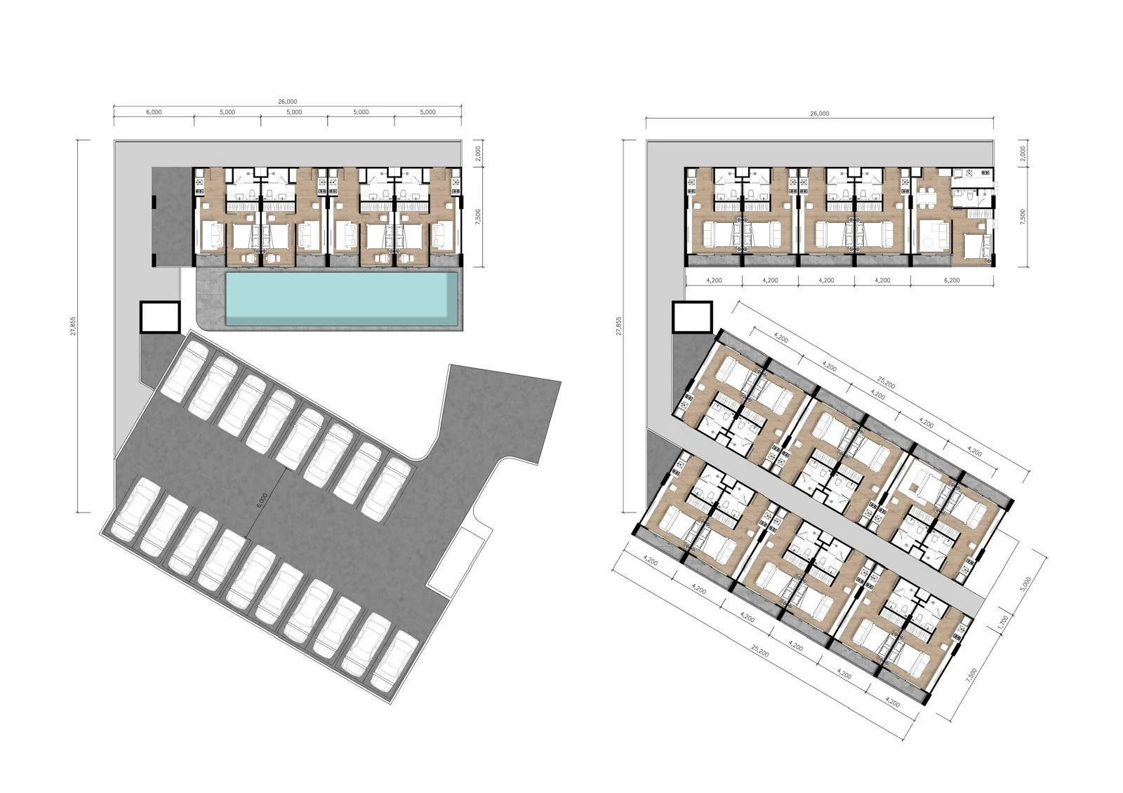 The Land of Siam apartment complex also features a swimming pool, designed to complement the natural surroundings and enhance the overall sense of relaxation and wellness.